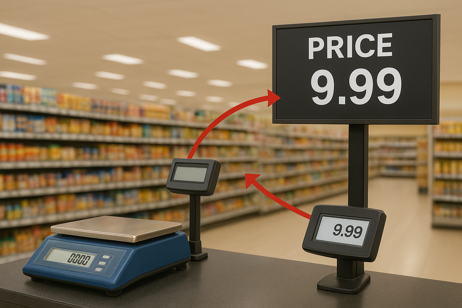 Balanças, telão de preço, busca preços, etiquetas eletrônicas. Dançarinos de vários sistemas que precisam estar sempre em perfeitas sincronia.